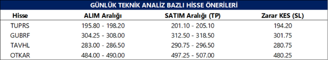 Günlük Teknik Analiz Bazlı Hisse Önerileri