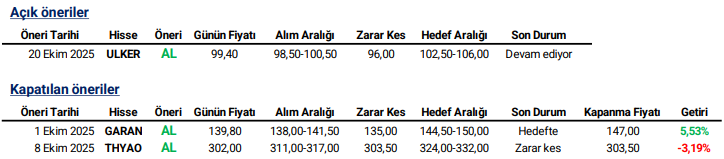 Günlük Hisse Önerileri