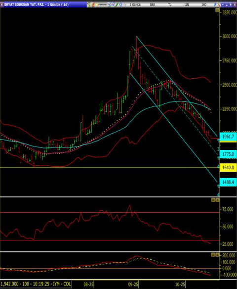• Geri çekilmelerin devamı durumunda bollinger alt banda denk gelen 1903 destek seviyesinde mevcut pozisyonlar korunabilir.