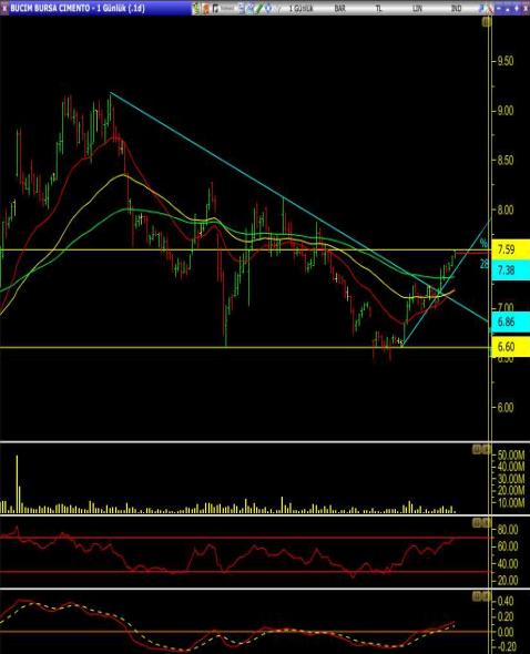 • Fiyatın hareketli ortalamaların üzerinde kalması halinde yükseliş devam edebilir. Yeni alımlar için hacim artması olumlu olacaktır.