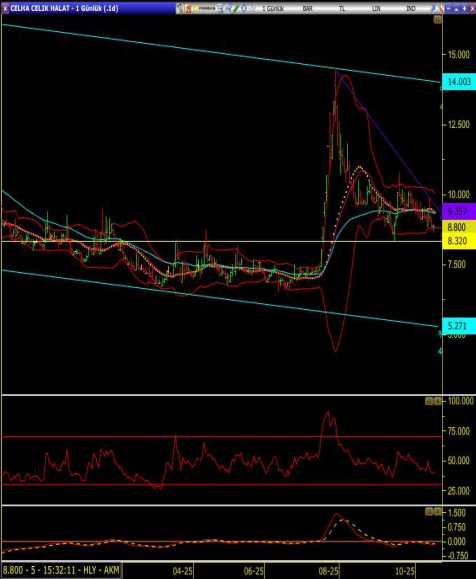 • Geri çekilmelerin devamı durumunda bollinger alt banda denk gelen 8.64 destek seviyesinde mevcut pozisyonlar korunabilir.