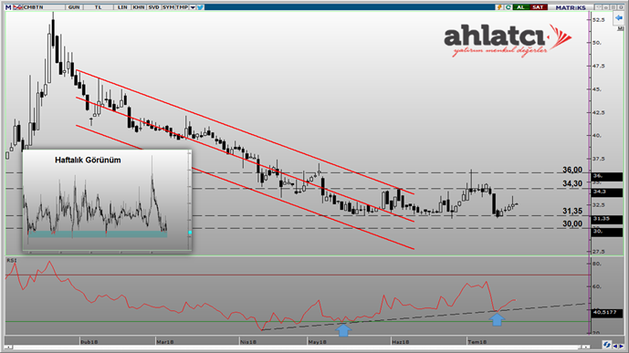 2018 Şubat ayından sonra aşağı yönlü bir trend içerisinde hareket eden hisse fiyatı son üç aylık süreçte 31,35 desteği üzerinde yatay bir seyir izlemiştir. Haftalık grafikte dönem dönem hisse fiyatının bu seviyelere geldiği fakat daha sonra değişen konjonktürle yükseliş gerçekleştirdiği görülmektedir. Teknik indikatörlerin mevcut yatay seyre rağmen fiyatta bir güçlenme olduğunu işaret etmesi ise bir diğer gelişme olarak karşımıza çıkmaktadır. Geçmiş fiyat hareketleri değerlendirildiğinde, önümüzdeki süreçte hisse fiyatının 34,30-36,00 seviyelerinin üzerine hareket etmesi durumunda yeni bir yükseliş eğilimine girebileceği düşünülürken, aşağıda 30,00-31,35 fiyat aralığı önemli bir destek bölgesi olarak takip edilmektedir.