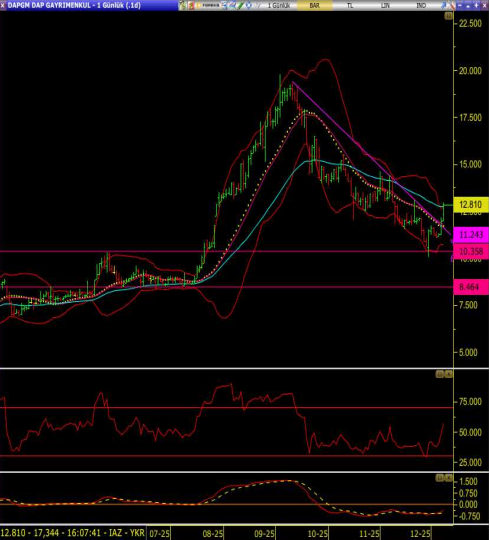Olası kar realizasyonlarının oluşumu durumunda bollinger üst bandında 12.68 destek seviyesinde mevcut pozisyonlar korunabilir.