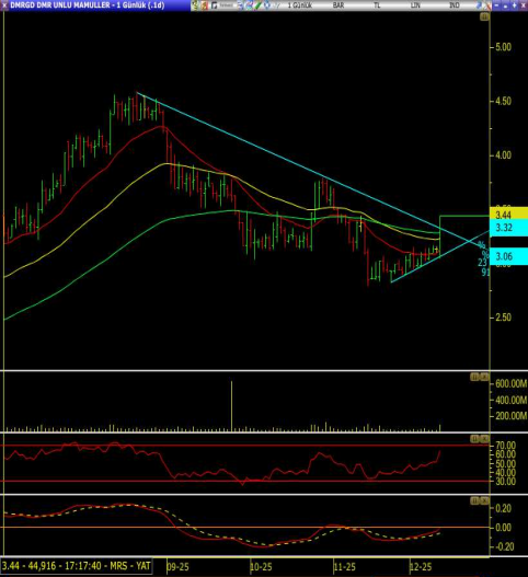 Agresif kısa vadeli alım için 3.44 üstü kapanış ve devamı izlenebilir. Geri çekilme eğiliminde 3.32 stoploss olarak takip edilmelidir.