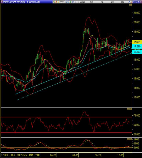 Geri çekilmelerin artması halinde bollinger orta banda denk gelen 17.57 destek seviyesinde mevcut pozisyonlar korunabilir.