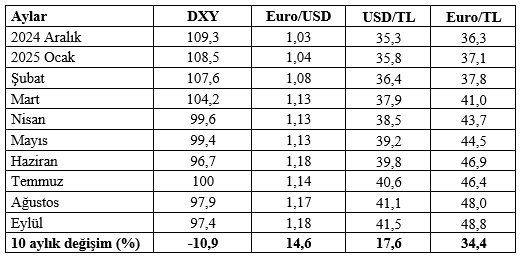 Şimdi bu çerçevede yılbaşından bu yana bu iki göstergede ve bunlara karşı Türk Lirasının değerinde yaşanan gelişmelere bakalım (göstergeler için kaynak: www.tr.tradingview.com, tabloda yer alan değerler ay sonu değerleridir.)