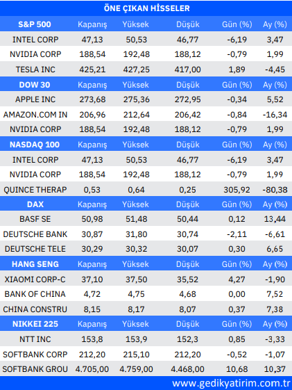 Kaynak: Gedik Yatırım Uluslararası Piyasalar Günlük Bülten