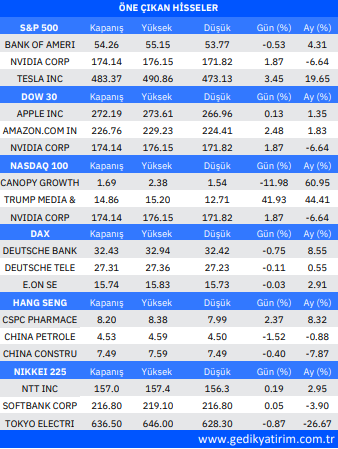 Kaynak: Gedik Yatırım Uluslararası Piyasalar Günlük Bülten