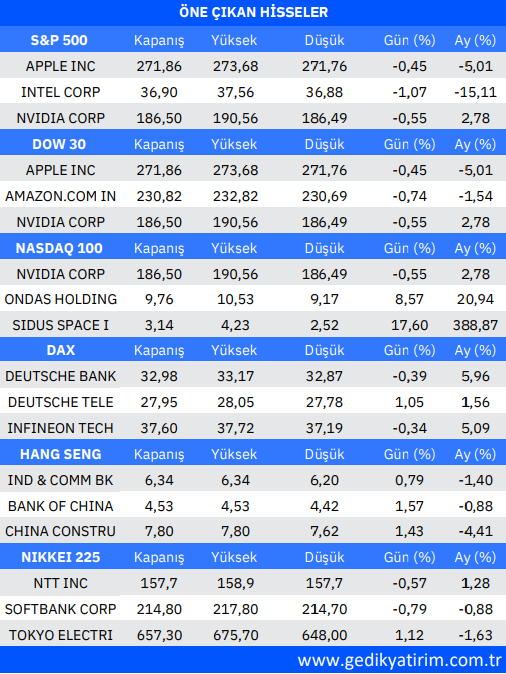 Kaynak: Gedik Yatırım Uluslararası Piyasalar Günlük Bülten