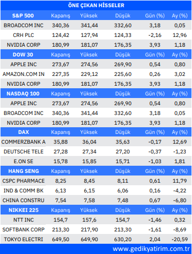 Kaynak: Gedik Yatırım Uluslararası Piyasalar Günlük Bülten