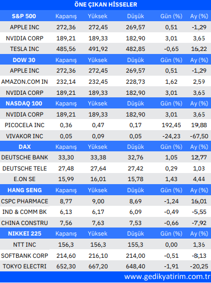 Kaynak: Gedik Yatırım Uluslararası Piyasalar Günlük Bülten