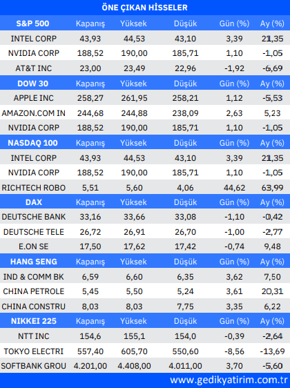Kaynak: Gedik Yatırım Uluslararası Piyasalar Günlük Bülten