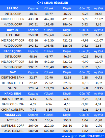 Kaynak: Gedik Yatırım Uluslararası Piyasalar Günlük Bülten