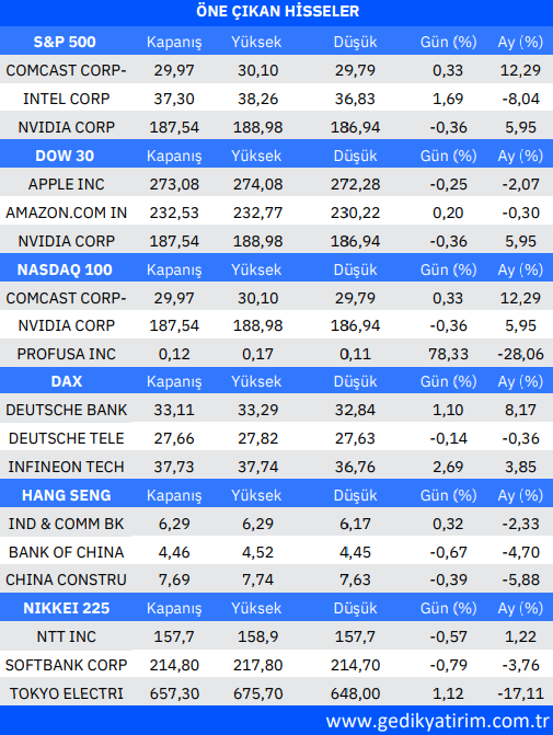 Kaynak: Gedik Yatırım Uluslararası Piyasalar Günlük Bülten
