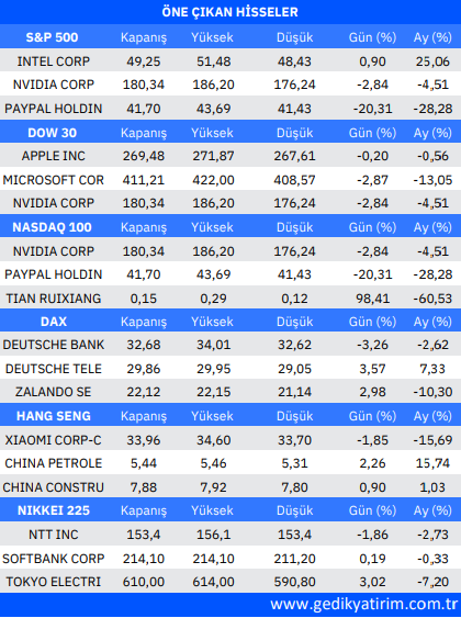 Kaynak: Gedik Yatırım Uluslararası Piyasalar Günlük Bülten