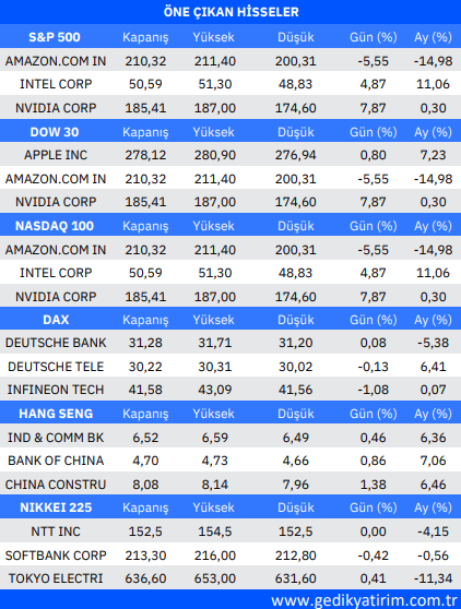 Kaynak: Gedik Yatırım Uluslararası Piyasalar Günlük Bülten