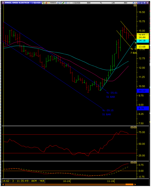 • Orta vadeli düşen kanalın üst bandını kırmasının ardından hisse Ekim ayında hızlı yükselişe geçtiğini görüyoruz.