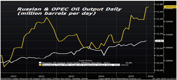 Geçtiğimiz hafta Rusya Enerji Bakanı Aleksander Novak, OPEC toplantısında %5’lik üretim kısıntısının görüşebileceğini söyledi. Novak petrol üretiminde yüzde 5’lik üretim kısıntısına gitme teklifini Suudi Arabistan’ın daha önceden yaptığını belirtirken, Rusya’nın üretim kısıntısına ilişkin görüşme konusunda istekli olduğunu vurguladı. Novak yaptığı açıklamaların ardından Brent ve Ham Petrol’de günlük yükselişler yüzde 8’e ulaştı. Bilindiği gibi Nijerya ve Venezüella gibi OPEC üyesi ülkeler sert düşen fiyatları engellemek için daha önceden üretimde kısıntıya gidilmesini önermişti. Fakat açıklamaların ardından, OPEC yetkilileri Rusya ile toplantı olmadığını ve Suudi Arabistan’ın ise yüzde 5 üretim kesintisi ile ilgili bir teklif sunmadığını söyledi.