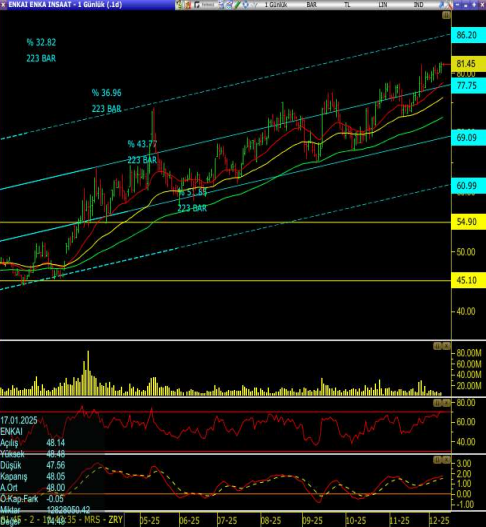 Yükselen kanalda kalıcılığın devamının sağlanması için hissenin 77.75 ara bant üzerinde kalması gerekir.