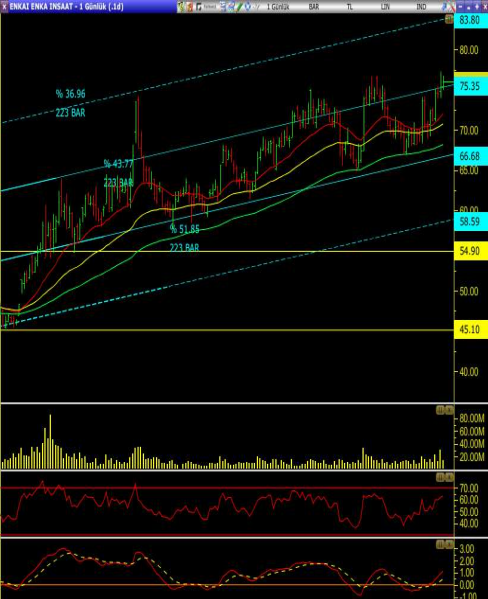 • Hisse uzun vadeli yükselen kanal içinde hareket ediyor. Kanal ara bandına çekilmesi ardından yeniden tepki alıp yükselmeye başlıyor.
