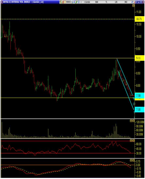 • Hisse 7.49 seviyesi üzerinde dinlenir ve tepki alır ise 7.45 seviyesi ilk direnç olmak üzere ilk etapta sırasıyla 7.90 ve 8.19 seviyeleri hedeflenebilir.