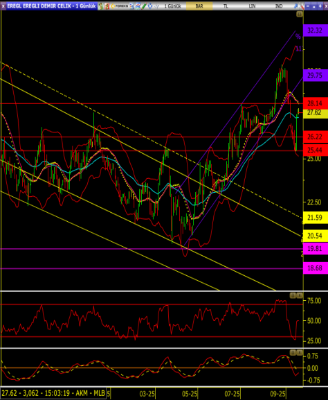 • Hisse 25.44 seviyesinden başlayan tepki alımlarının ardından bugün alımların zayıflamasıyla beraber yön arayışı içerisinde olduğunu gözlemliyoruz.