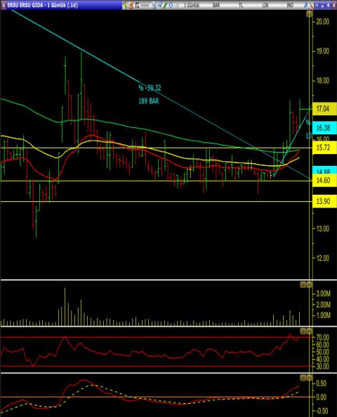 • Hisse uzun vadeli düşen trendini aşarak, hacim artışıyla birlikte hızlı şekilde yükselerek 17.04 seviyesine kadar ivmelenmiş.