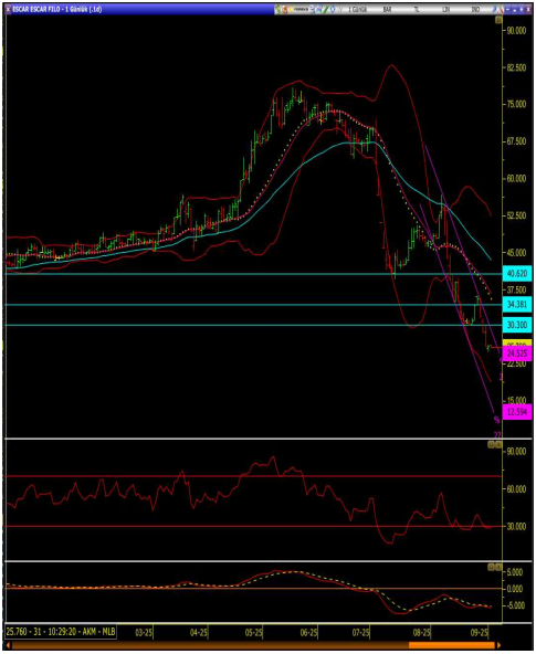 • Bu seviyenin altında bollinger alt banda doğru baskı görülmeye devam edebilir.