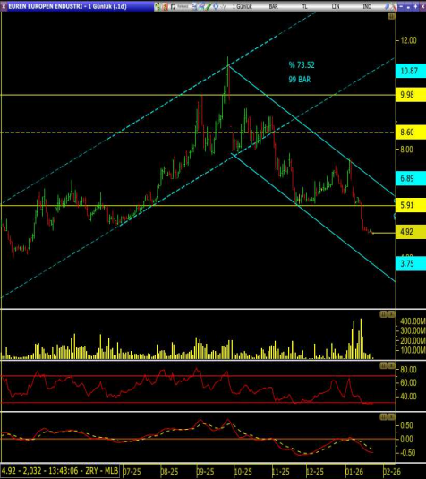 Aynı süreçte geri çekilmelerde fiyat sırasıyla 5,91 ve ardından 4,92 seviyelerine inerek her seferinde önceki diplerin altına sarktı ve daha düşük dip yapısını tamamladı.