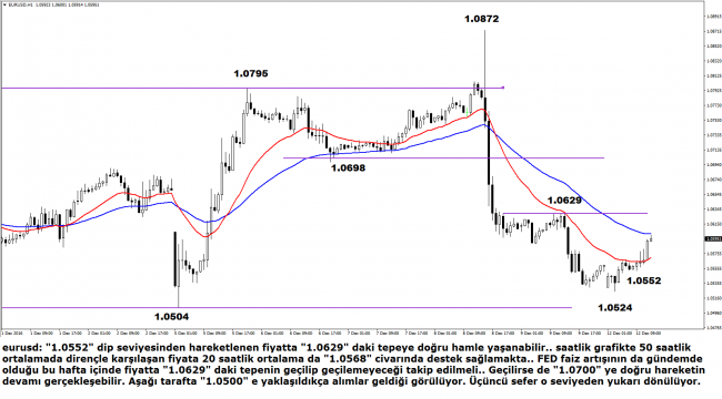 “1.0552” dip seviyesinden hareketlenen fiyatta “1.0629” daki tepeye doğru hamle yaşanabilir..