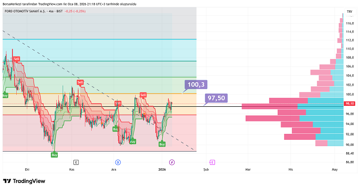 Kilit soru, mevcut destek seviyelerinin tutup tutmayacağı. Hacim profil analizi, 98 TL’nin altında satış baskısının artabileceğine işaret ederken, üst seviyelerde güçlü direnç bölgeleri bekliyor.