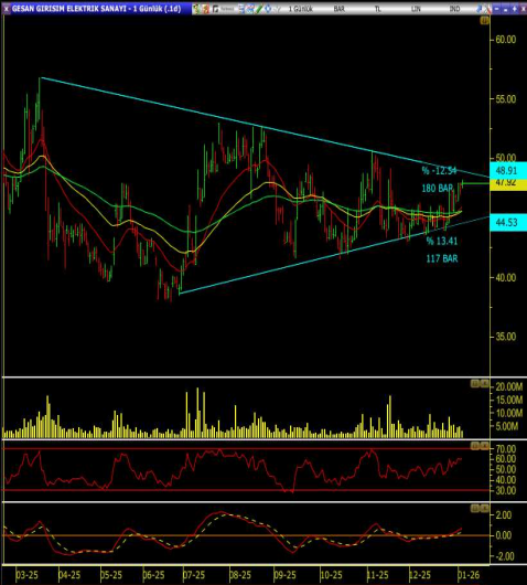 Toparlanma hareketi ile birlikte grafiğin üzerinde görülen hareketli ortalamaların yönlerini yukarı çevirmiş olması olumlu görünüyor.