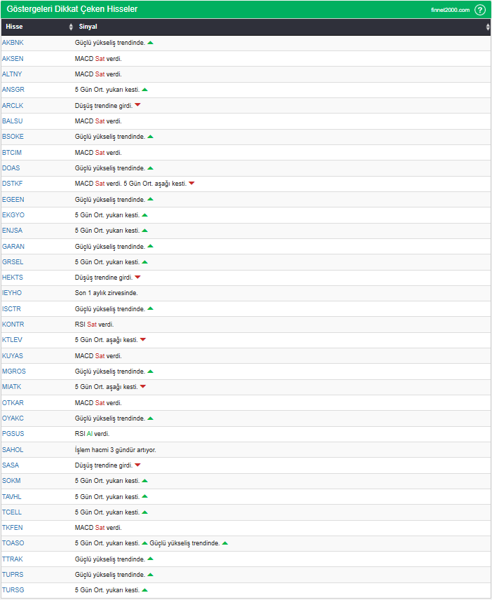 Göstergelerin Kullanımında Dikkat Edilmesi Gereken Hususlar: Göstergeler, hisse senedi seçiminde tek başına yeterli değildir. Teknik Analiz Literatüründe yaygın olan, gösterge kullanımı dikkate alınarak veriler hesaplanmıştır. Diğer teknik analiz yöntemleri ile birlikte kullanılmalıdır. Burada ön plana çıkan hisse senetleri, diğer teknik analiz yöntemleri ve temel analizle desteklendikten sonra tutarlı sonuçlar elde edilebilir. Osilatör ve göstergelerin fiyat hareketine karşı duyarlı oldukları unutulmamalıdır.