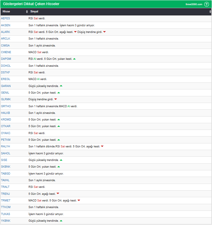 Göstergelerin Kullanımında Dikkat Edilmesi Gereken Hususlar: Göstergeler, hisse senedi seçiminde tek başına yeterli değildir. Teknik Analiz Literatüründe yaygın olan, gösterge kullanımı dikkate alınarak veriler hesaplanmıştır. Diğer teknik analiz yöntemleri ile birlikte kullanılmalıdır. Burada ön plana çıkan hisse senetleri, diğer teknik analiz yöntemleri ve temel analizle desteklendikten sonra tutarlı sonuçlar elde edilebilir. Osilatör ve göstergelerin fiyat hareketine karşı duyarlı oldukları unutulmamalıdır.