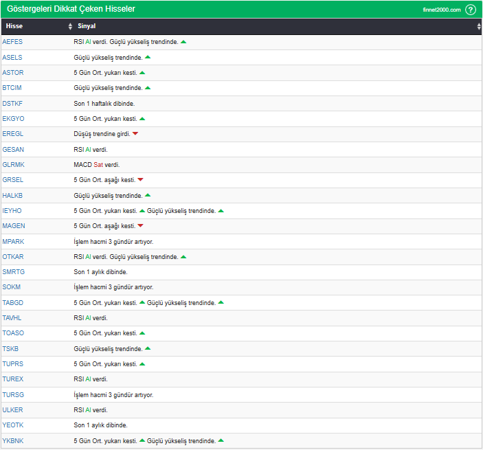 Göstergelerin Kullanımında Dikkat Edilmesi Gereken Hususlar: Göstergeler, hisse senedi seçiminde tek başına yeterli değildir. Teknik Analiz Literatüründe yaygın olan, gösterge kullanımı dikkate alınarak veriler hesaplanmıştır. Diğer teknik analiz yöntemleri ile birlikte kullanılmalıdır. Burada ön plana çıkan hisse senetleri, diğer teknik analiz yöntemleri ve temel analizle desteklendikten sonra tutarlı sonuçlar elde edilebilir. Osilatör ve göstergelerin fiyat hareketine karşı duyarlı oldukları unutulmamalıdır.