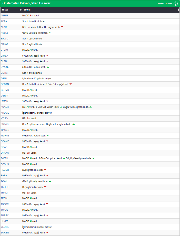 Göstergelerin Kullanımında Dikkat Edilmesi Gereken Hususlar: Göstergeler, hisse senedi seçiminde tek başına yeterli değildir. Teknik Analiz Literatüründe yaygın olan, gösterge kullanımı dikkate alınarak veriler hesaplanmıştır. Diğer teknik analiz yöntemleri ile birlikte kullanılmalıdır. Burada ön plana çıkan hisse senetleri, diğer teknik analiz yöntemleri ve temel analizle desteklendikten sonra tutarlı sonuçlar elde edilebilir. Osilatör ve göstergelerin fiyat hareketine karşı duyarlı oldukları unutulmamalıdır.