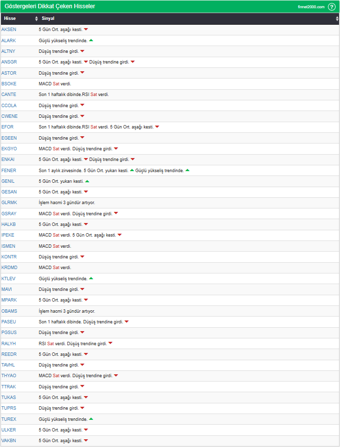 Göstergelerin Kullanımında Dikkat Edilmesi Gereken Hususlar: Göstergeler, hisse senedi seçiminde tek başına yeterli değildir. Teknik Analiz Literatüründe yaygın olan, gösterge kullanımı dikkate alınarak veriler hesaplanmıştır. Diğer teknik analiz yöntemleri ile birlikte kullanılmalıdır. Burada ön plana çıkan hisse senetleri, diğer teknik analiz yöntemleri ve temel analizle desteklendikten sonra tutarlı sonuçlar elde edilebilir. Osilatör ve göstergelerin fiyat hareketine karşı duyarlı oldukları unutulmamalıdır.