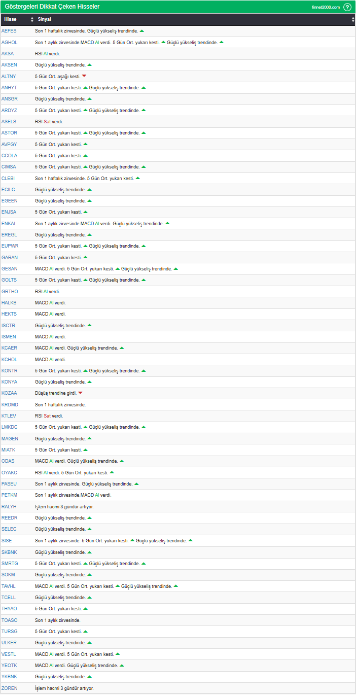 Göstergelerin Kullanımında Dikkat Edilmesi Gereken Hususlar: Göstergeler, hisse senedi seçiminde tek başına yeterli değildir. Teknik Analiz Literatüründe yaygın olan, gösterge kullanımı dikkate alınarak veriler hesaplanmıştır. Diğer teknik analiz yöntemleri ile birlikte kullanılmalıdır. Burada ön plana çıkan hisse senetleri, diğer teknik analiz yöntemleri ve temel analizle desteklendikten sonra tutarlı sonuçlar elde edilebilir. Osilatör ve göstergelerin fiyat hareketine karşı duyarlı oldukları unutulmamalıdır.