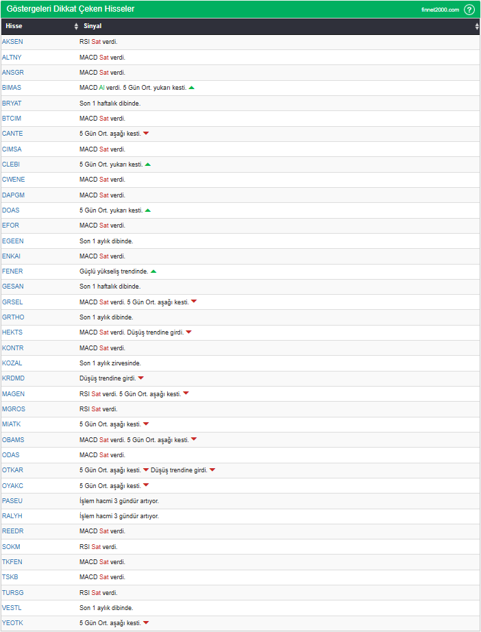 Göstergelerin Kullanımında Dikkat Edilmesi Gereken Hususlar: Göstergeler, hisse senedi seçiminde tek başına yeterli değildir. Teknik Analiz Literatüründe yaygın olan, gösterge kullanımı dikkate alınarak veriler hesaplanmıştır. Diğer teknik analiz yöntemleri ile birlikte kullanılmalıdır. Burada ön plana çıkan hisse senetleri, diğer teknik analiz yöntemleri ve temel analizle desteklendikten sonra tutarlı sonuçlar elde edilebilir. Osilatör ve göstergelerin fiyat hareketine karşı duyarlı oldukları unutulmamalıdır.