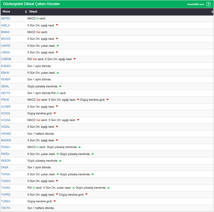 Göstergelerin Kullanımında Dikkat Edilmesi Gereken Hususlar: Göstergeler, hisse senedi seçiminde tek başına yeterli değildir. Teknik Analiz Literatüründe yaygın olan, gösterge kullanımı dikkate alınarak veriler hesaplanmıştır. Diğer teknik analiz yöntemleri ile birlikte kullanılmalıdır. Burada ön plana çıkan hisse senetleri, diğer teknik analiz yöntemleri ve temel analizle desteklendikten sonra tutarlı sonuçlar elde edilebilir. Osilatör ve göstergelerin fiyat hareketine karşı duyarlı oldukları unutulmamalıdır.