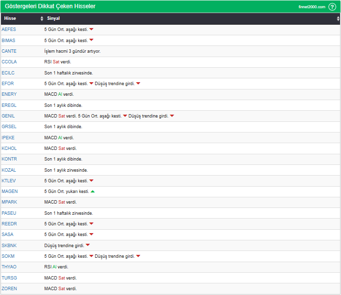 Göstergelerin Kullanımında Dikkat Edilmesi Gereken Hususlar: Göstergeler, hisse senedi seçiminde tek başına yeterli değildir. Teknik Analiz Literatüründe yaygın olan, gösterge kullanımı dikkate alınarak veriler hesaplanmıştır. Diğer teknik analiz yöntemleri ile birlikte kullanılmalıdır. Burada ön plana çıkan hisse senetleri, diğer teknik analiz yöntemleri ve temel analizle desteklendikten sonra tutarlı sonuçlar elde edilebilir. Osilatör ve göstergelerin fiyat hareketine karşı duyarlı oldukları unutulmamalıdır.