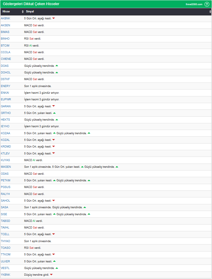 Göstergelerin Kullanımında Dikkat Edilmesi Gereken Hususlar: Göstergeler, hisse senedi seçiminde tek başına yeterli değildir. Teknik Analiz Literatüründe yaygın olan, gösterge kullanımı dikkate alınarak veriler hesaplanmıştır. Diğer teknik analiz yöntemleri ile birlikte kullanılmalıdır. Burada ön plana çıkan hisse senetleri, diğer teknik analiz yöntemleri ve temel analizle desteklendikten sonra tutarlı sonuçlar elde edilebilir. Osilatör ve göstergelerin fiyat hareketine karşı duyarlı oldukları unutulmamalıdır.