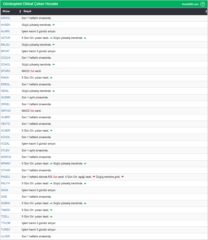 Göstergelerin Kullanımında Dikkat Edilmesi Gereken Hususlar: Göstergeler, hisse senedi seçiminde tek başına yeterli değildir. Teknik Analiz Literatüründe yaygın olan, gösterge kullanımı dikkate alınarak veriler hesaplanmıştır. Diğer teknik analiz yöntemleri ile birlikte kullanılmalıdır. Burada ön plana çıkan hisse senetleri, diğer teknik analiz yöntemleri ve temel analizle desteklendikten sonra tutarlı sonuçlar elde edilebilir. Osilatör ve göstergelerin fiyat hareketine karşı duyarlı oldukları unutulmamalıdır.