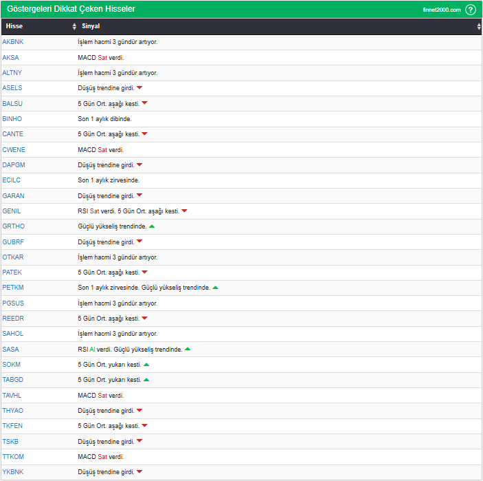Göstergelerin Kullanımında Dikkat Edilmesi Gereken Hususlar: Göstergeler, hisse senedi seçiminde tek başına yeterli değildir. Teknik Analiz Literatüründe yaygın olan, gösterge kullanımı dikkate alınarak veriler hesaplanmıştır. Diğer teknik analiz yöntemleri ile birlikte kullanılmalıdır. Burada ön plana çıkan hisse senetleri, diğer teknik analiz yöntemleri ve temel analizle desteklendikten sonra tutarlı sonuçlar elde edilebilir. Osilatör ve göstergelerin fiyat hareketine karşı duyarlı oldukları unutulmamalıdır.