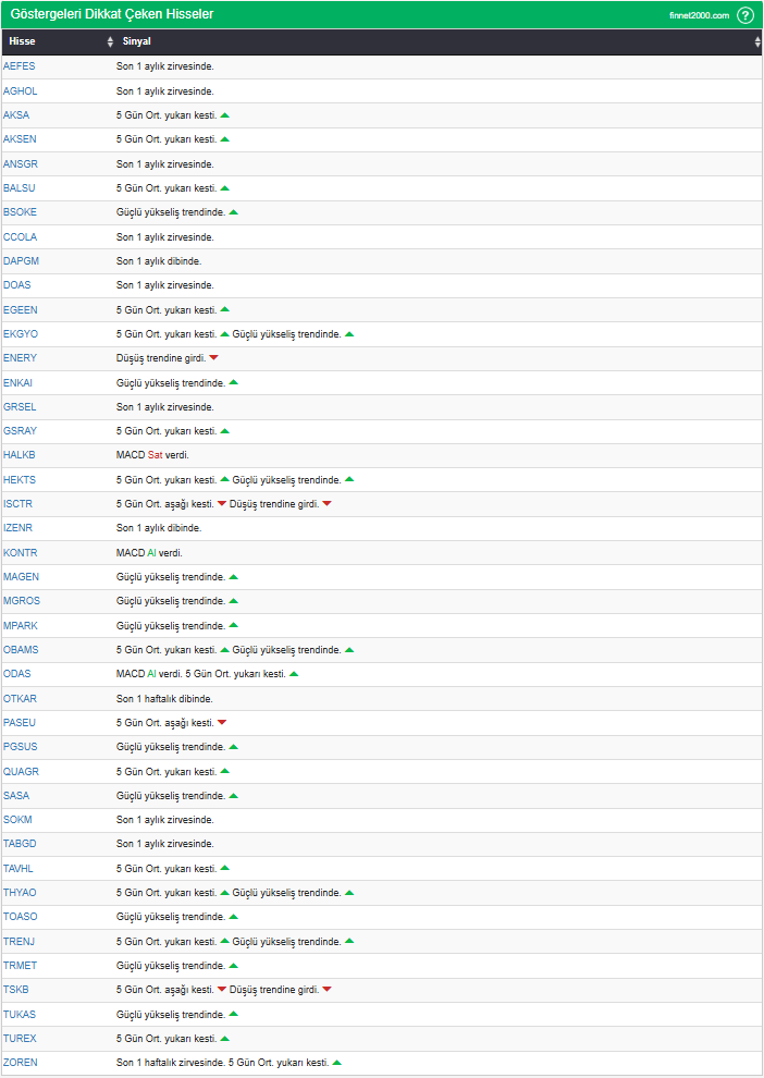 Göstergelerin Kullanımında Dikkat Edilmesi Gereken Hususlar: Göstergeler, hisse senedi seçiminde tek başına yeterli değildir. Teknik Analiz Literatüründe yaygın olan, gösterge kullanımı dikkate alınarak veriler hesaplanmıştır. Diğer teknik analiz yöntemleri ile birlikte kullanılmalıdır. Burada ön plana çıkan hisse senetleri, diğer teknik analiz yöntemleri ve temel analizle desteklendikten sonra tutarlı sonuçlar elde edilebilir. Osilatör ve göstergelerin fiyat hareketine karşı duyarlı oldukları unutulmamalıdır.