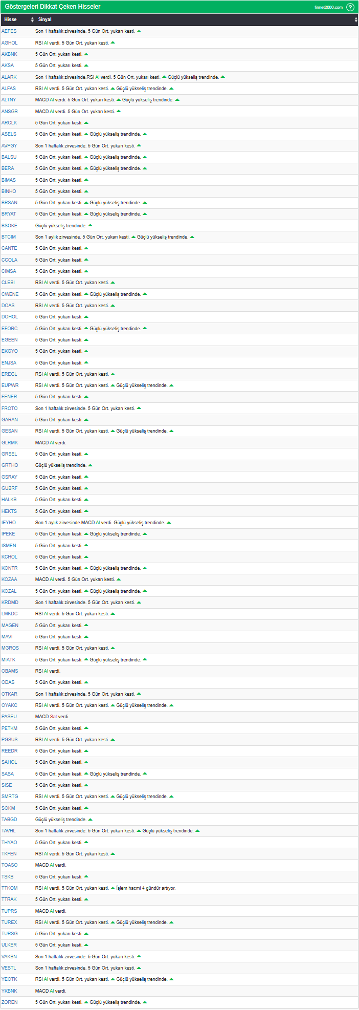 Göstergelerin Kullanımında Dikkat Edilmesi Gereken Hususlar: Göstergeler, hisse senedi seçiminde tek başına yeterli değildir. Teknik Analiz Literatüründe yaygın olan, gösterge kullanımı dikkate alınarak veriler hesaplanmıştır. Diğer teknik analiz yöntemleri ile birlikte kullanılmalıdır. Burada ön plana çıkan hisse senetleri, diğer teknik analiz yöntemleri ve temel analizle desteklendikten sonra tutarlı sonuçlar elde edilebilir. Osilatör ve göstergelerin fiyat hareketine karşı duyarlı oldukları unutulmamalıdır.