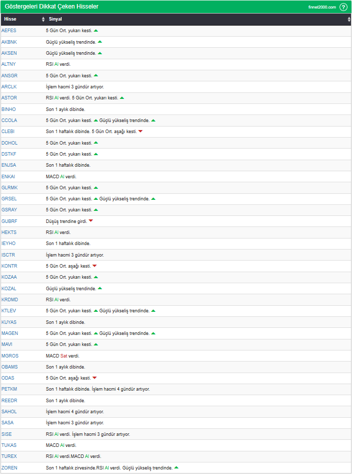 Göstergelerin Kullanımında Dikkat Edilmesi Gereken Hususlar: Göstergeler, hisse senedi seçiminde tek başına yeterli değildir. Teknik Analiz Literatüründe yaygın olan, gösterge kullanımı dikkate alınarak veriler hesaplanmıştır. Diğer teknik analiz yöntemleri ile birlikte kullanılmalıdır. Burada ön plana çıkan hisse senetleri, diğer teknik analiz yöntemleri ve temel analizle desteklendikten sonra tutarlı sonuçlar elde edilebilir. Osilatör ve göstergelerin fiyat hareketine karşı duyarlı oldukları unutulmamalıdır.