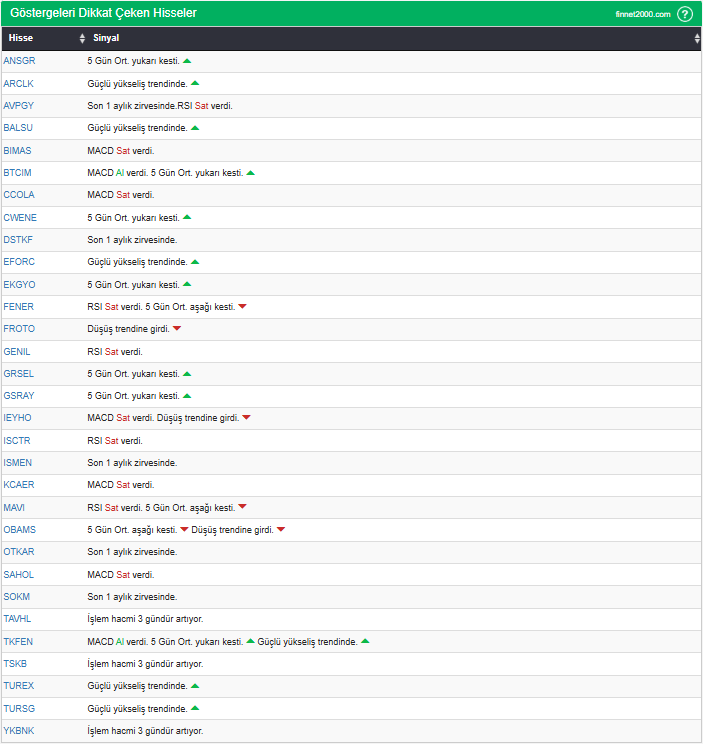 Göstergelerin Kullanımında Dikkat Edilmesi Gereken Hususlar: Göstergeler, hisse senedi seçiminde tek başına yeterli değildir. Teknik Analiz Literatüründe yaygın olan, gösterge kullanımı dikkate alınarak veriler hesaplanmıştır. Diğer teknik analiz yöntemleri ile birlikte kullanılmalıdır. Burada ön plana çıkan hisse senetleri, diğer teknik analiz yöntemleri ve temel analizle desteklendikten sonra tutarlı sonuçlar elde edilebilir. Osilatör ve göstergelerin fiyat hareketine karşı duyarlı oldukları unutulmamalıdır.
