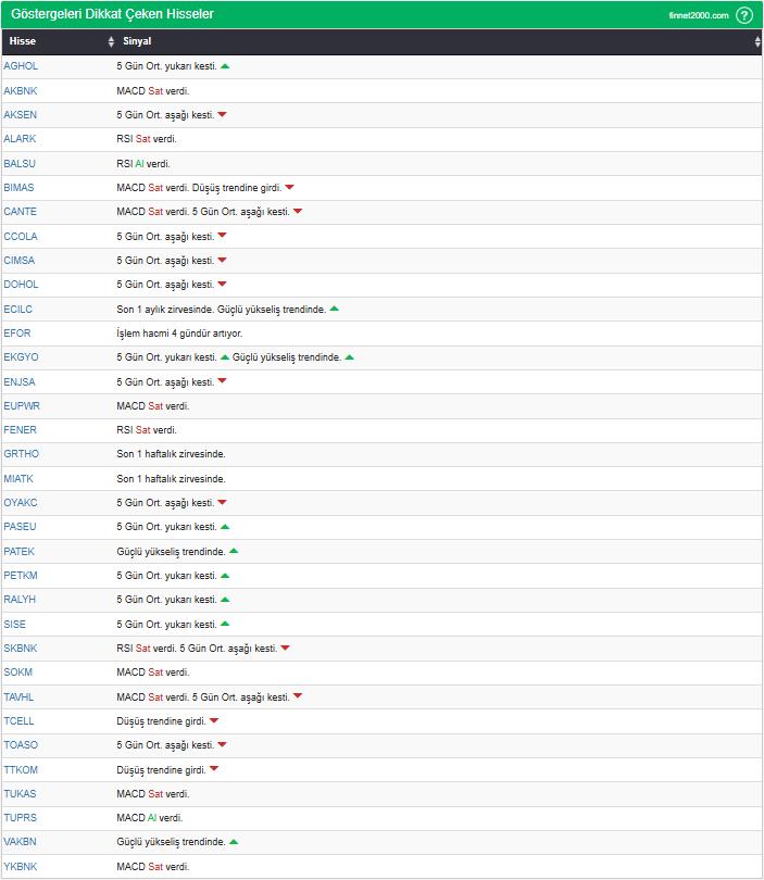 Göstergelerin Kullanımında Dikkat Edilmesi Gereken Hususlar: Göstergeler, hisse senedi seçiminde tek başına yeterli değildir. Teknik Analiz Literatüründe yaygın olan, gösterge kullanımı dikkate alınarak veriler hesaplanmıştır. Diğer teknik analiz yöntemleri ile birlikte kullanılmalıdır. Burada ön plana çıkan hisse senetleri, diğer teknik analiz yöntemleri ve temel analizle desteklendikten sonra tutarlı sonuçlar elde edilebilir. Osilatör ve göstergelerin fiyat hareketine karşı duyarlı oldukları unutulmamalıdır.