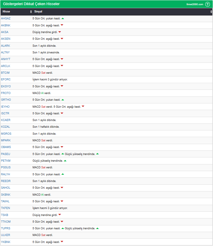 Göstergelerin Kullanımında Dikkat Edilmesi Gereken Hususlar: Göstergeler, hisse senedi seçiminde tek başına yeterli değildir. Teknik Analiz Literatüründe yaygın olan, gösterge kullanımı dikkate alınarak veriler hesaplanmıştır. Diğer teknik analiz yöntemleri ile birlikte kullanılmalıdır. Burada ön plana çıkan hisse senetleri, diğer teknik analiz yöntemleri ve temel analizle desteklendikten sonra tutarlı sonuçlar elde edilebilir. Osilatör ve göstergelerin fiyat hareketine karşı duyarlı oldukları unutulmamalıdır.